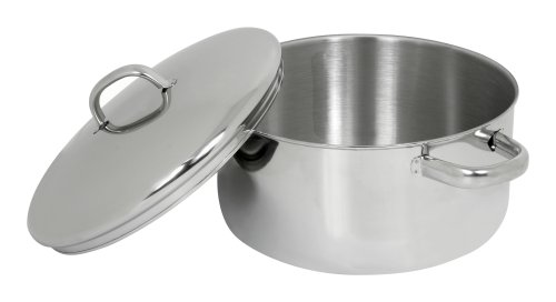 - 4-1/2-quart pot for simmering soups, cooking pasta, and making chili- Made of mirror-finish, 18/10 stainless steel with aluminum disk to spread heat quickly and evenly